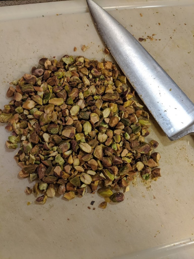 Just rough chop the pistachios, they don’t need to be tiny
