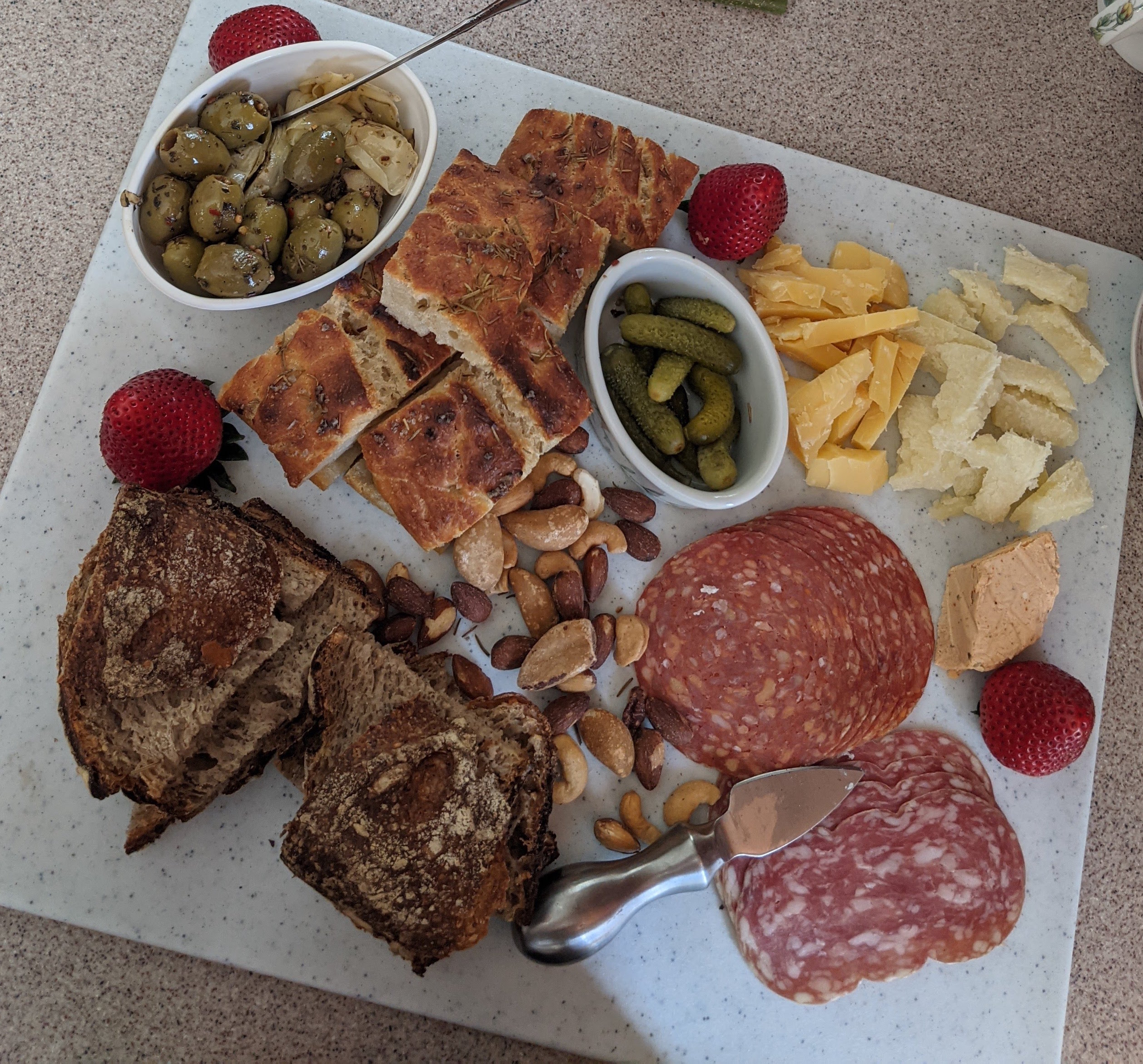Fresh focaccia and sourdough for our antipasto